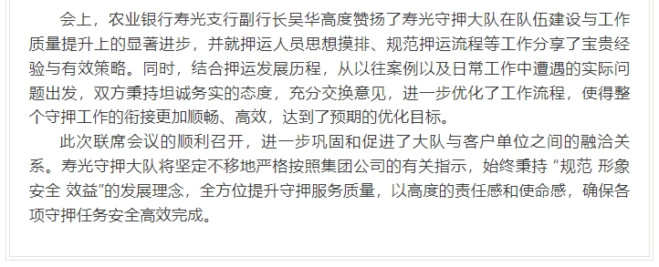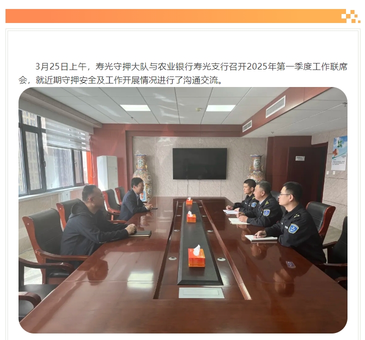 壽光守押大隊(duì)與農(nóng)業(yè)銀行壽光支行召開(kāi)2025年第一季度工作聯(lián)席會(huì)