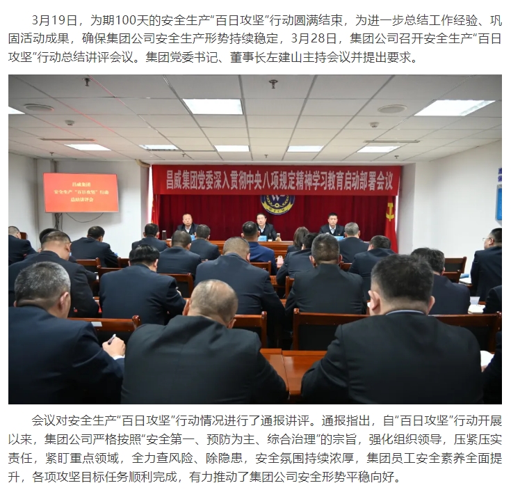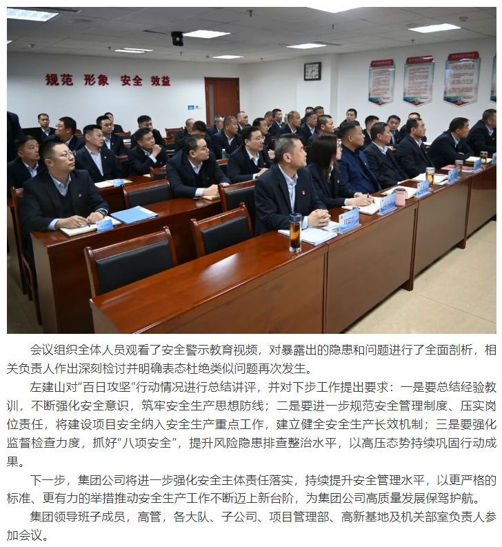 集團(tuán)公司召開安全生產(chǎn)“百日攻堅(jiān)”行動(dòng)總結(jié)講評會(huì)議